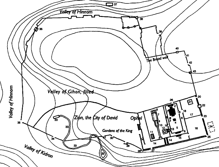 Note: The location of numbers 7 and 13 on the site of Ophel is hypothetical.